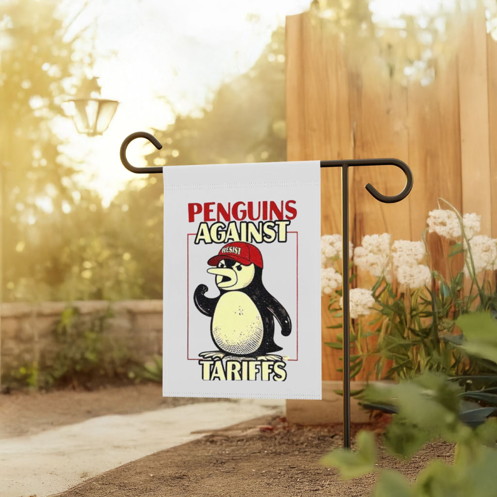 Penguins against Tariffs resist red hat Flag